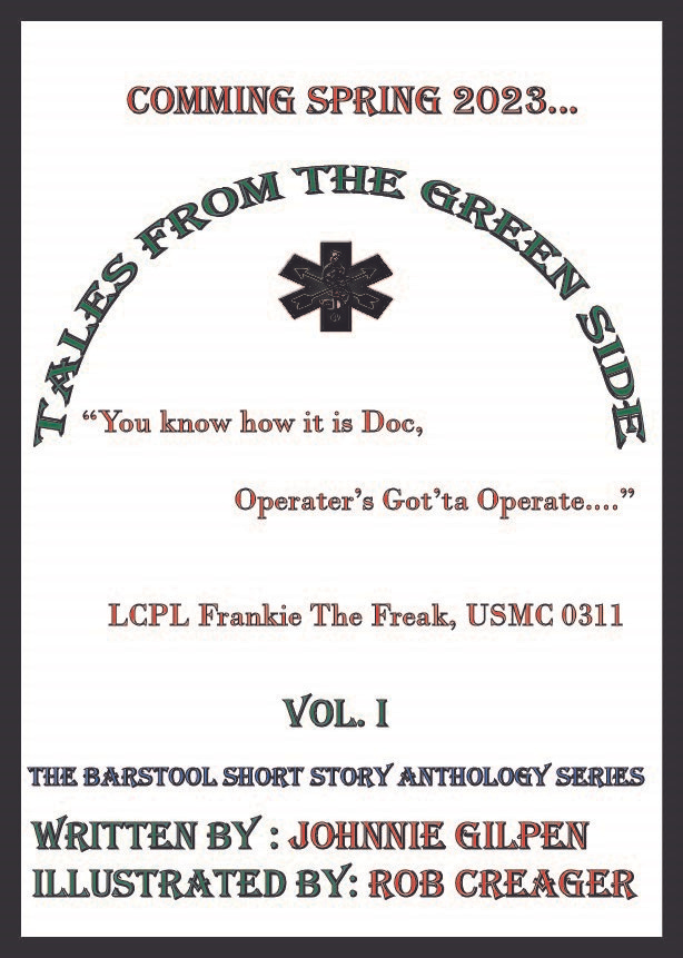 For those that don’t know we are writing a book series titled The Barstool Short Story Anthology Series. The series consists of books that are made up of short stories based on his drawing like the one above. The first book we hope to publish in late summer 2023 will be Tales from the Greenside, then Tales from the Back of the Bus based on his EMS and Fire Drawing in the Winter of 2023, and Tales from the ER in the Spring of 2024.
